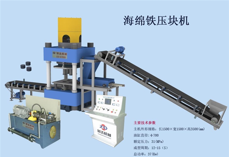 ,能将(jiāng)粉粒狀輸(shū)、或塊狀的(de)海綿鐵壓(ya)制成